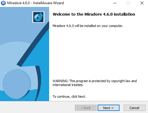 Run the installer (Miradore580.exe or Miradore580_Full.exe).