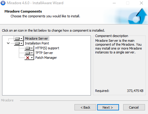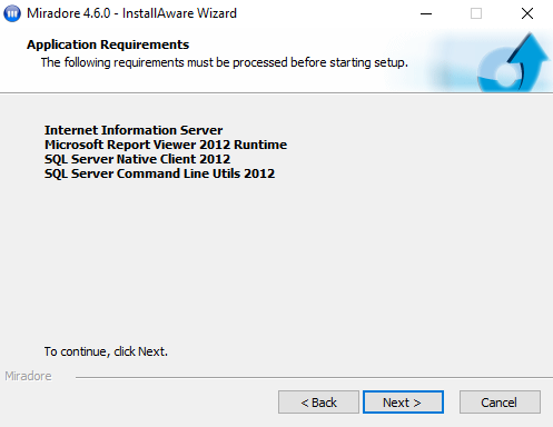 Miradore installer will install any prerequisites that are missing from the computer where Miradore server is installed to.